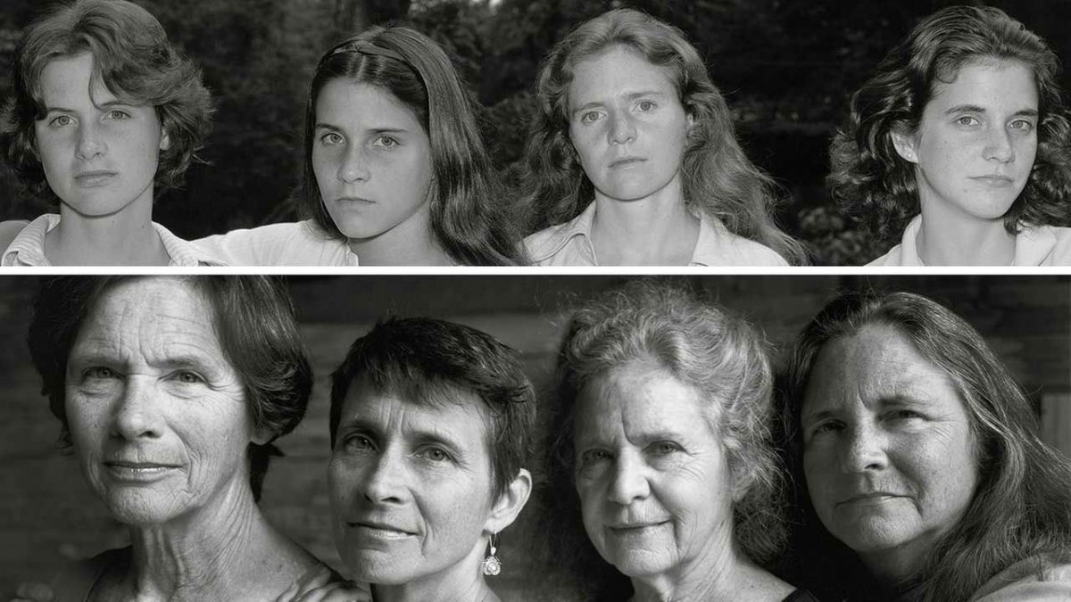 'The Brown Sisters' is a collection of photographs of Nixon's wife's and her three sisters, always in the same order and with the same camera. I think it is a beautiful way to convey the passing of time and we seen each and every one of their faces change throughout the photographs but also see their undeniable similarities as sisters, which I think becomes stronger as time passes and the photographs progress. Convey that even as the years roll on and the grow older they are still always connected, which is even more meaningful as one of the sister's pass away, which you see in the gaping hole she leaves where she used to stand, convey the empty space she had left in their lives as well.