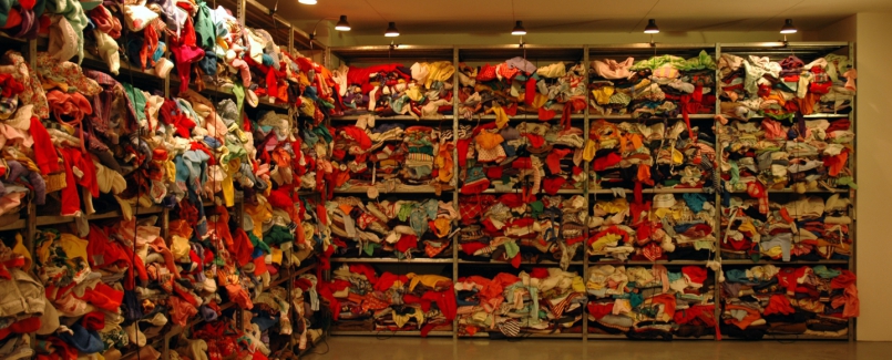 This installation was created for the exhibition "Histoires de Musée” in 1989 and concisest of hundreds of children's clothes stuffed into open cupboards in the walls while dimly lit anonymous photographs of children are displayed near by. When I was looking at the work the first thought that came to mind to me was, haunting. It seems to convey a childhood that we must all lose in growing up with the messy display of brightly coloured clothes that most viewers can recognize from their childhood and feel a pang of nostalgia for a time forgotten which we can never go back to.