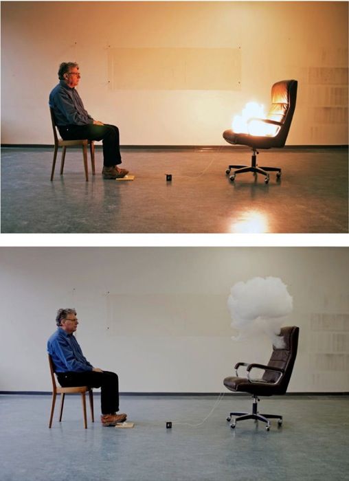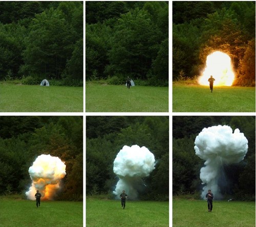 Signer work fascinated me most out of the choice of artists in the bibliography purely because of his use of medium, film and photography, which I adore and in which Signer experiments within in such a playful, imaginative way. He takes every day object such as boots, umbrellas, books etc. but creates explosions and collisions on film; the duality of the ordinary and the explosive nature is fascinating to watch as it is a, 'controlled destruction,' as Singer perfectly explains it.