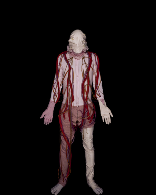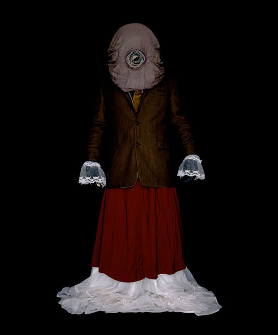 Danny Treacy's work is one of the most fascinating, unusual things I have ever seen as he creates these suits out of used clothing and found objects, always keeping his face covered not only to give the viewer a unsettling feeling but to harness in on this uncertainty, by covering his face he removed our human nature in identifying others, we cannot tell the gender, age or expression of this creature, by Treacy leaving the viewer to their imagination he creates a far more terrifying and unique experience as we have to imagine the story and intention of this being put before us.