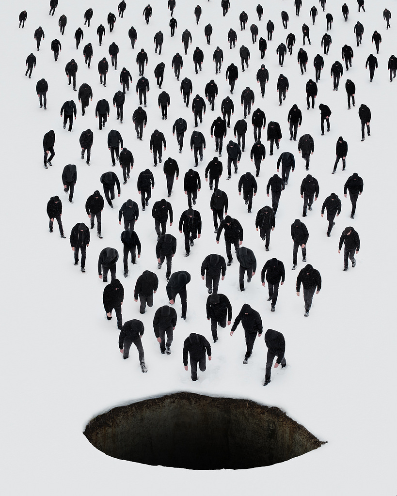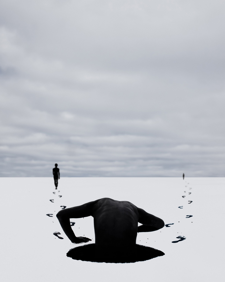 Sean Mundy is astounding in his use of white space as he used polar opposite colours to emphasise the isolation or emptiness in the surroundings, I also find his use of surrealism very interesting as he uses a mixture of Photoshop ad models to create this strange unknown world encapsulated in the somewhat terrifying whiteness.